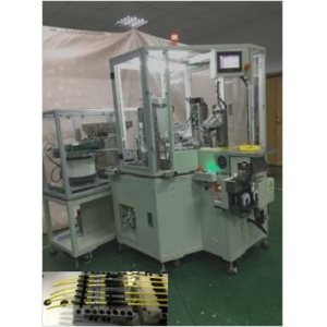 光纖連接器3個部品全部自動供料、人工擺放6條光纜之后,自動完成穿線作業(yè),